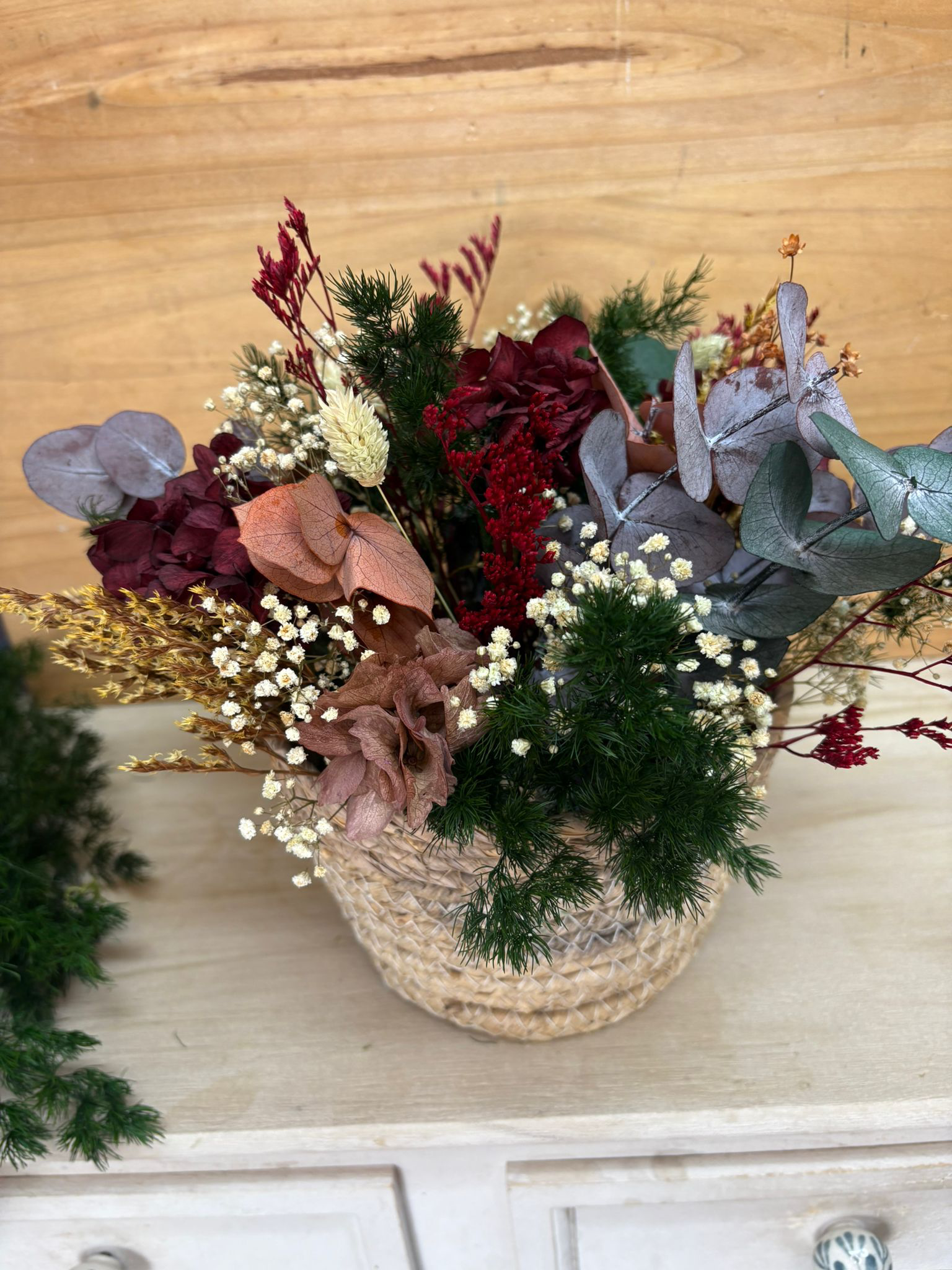 Cesto de flor preservada.